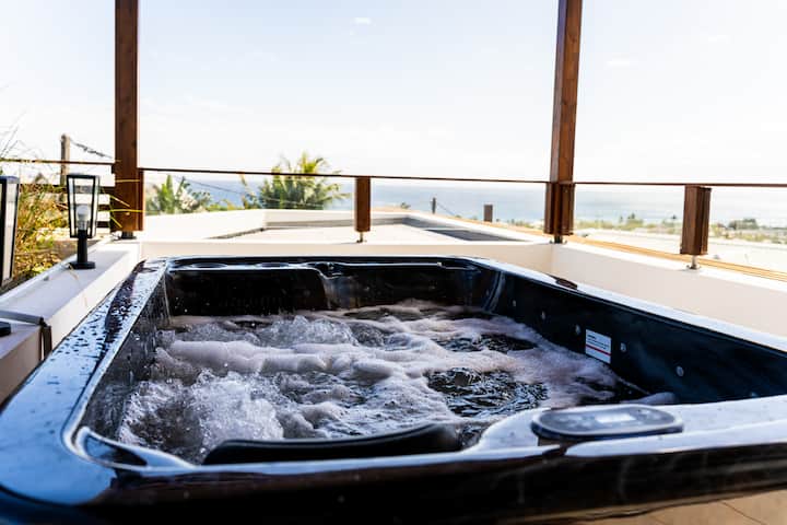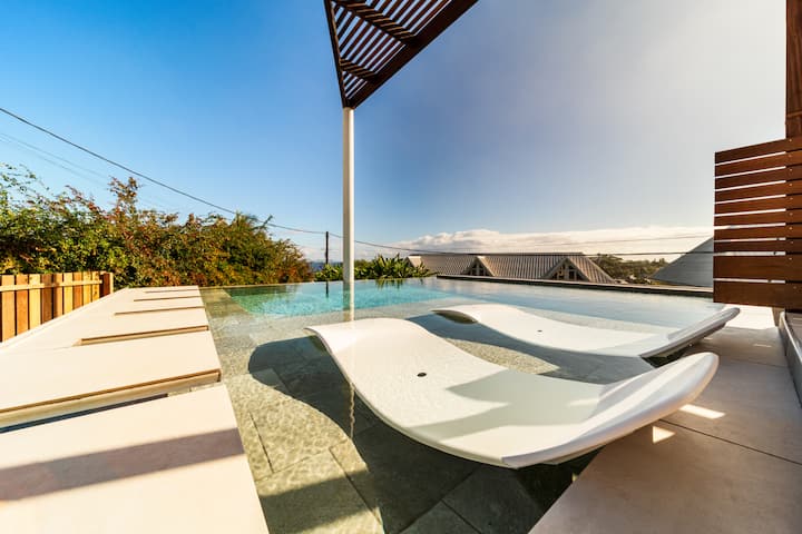 3 chambres, deux salles de bain et douche extérieure, offrent un panorama unique :